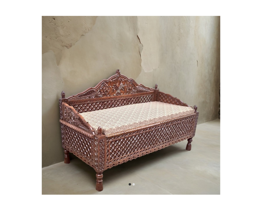 Vintage Hand Carved Jaali Solid Wood Daybed Sofa D12