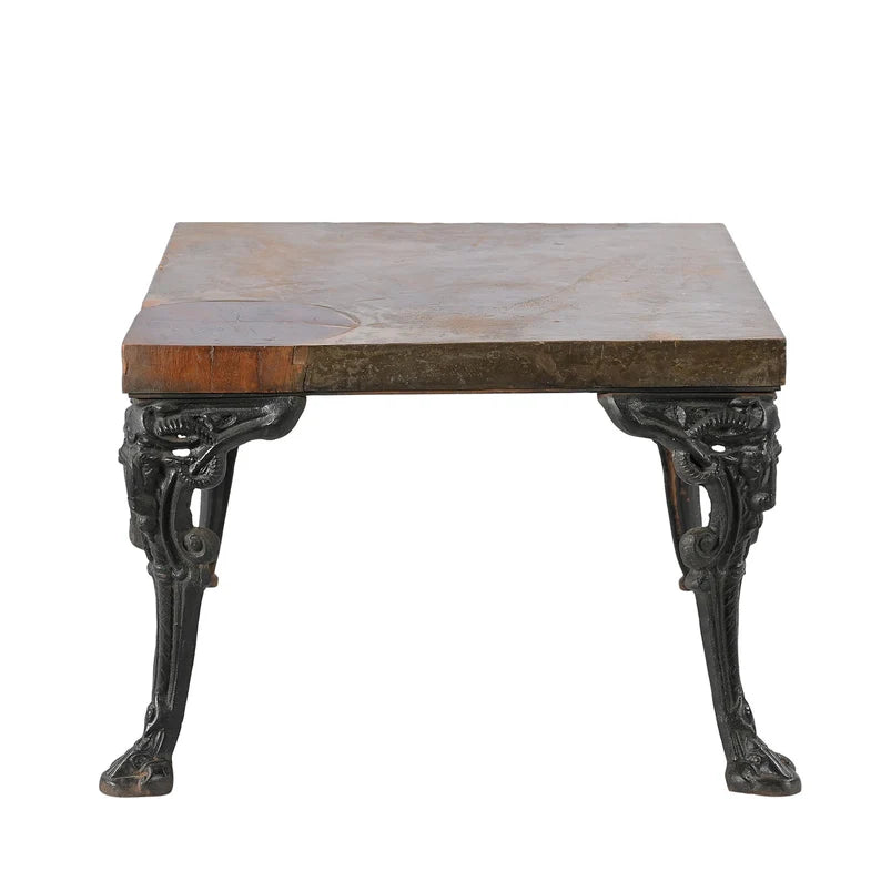 Vintage Hand Carved Solid Wood & Metal Side Table 42