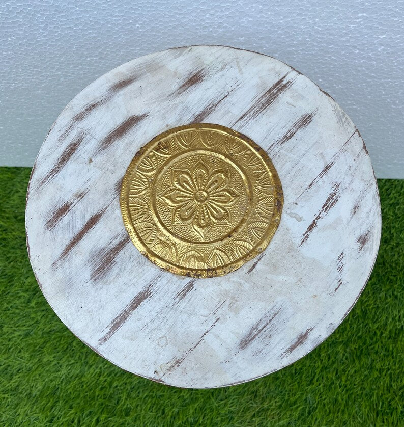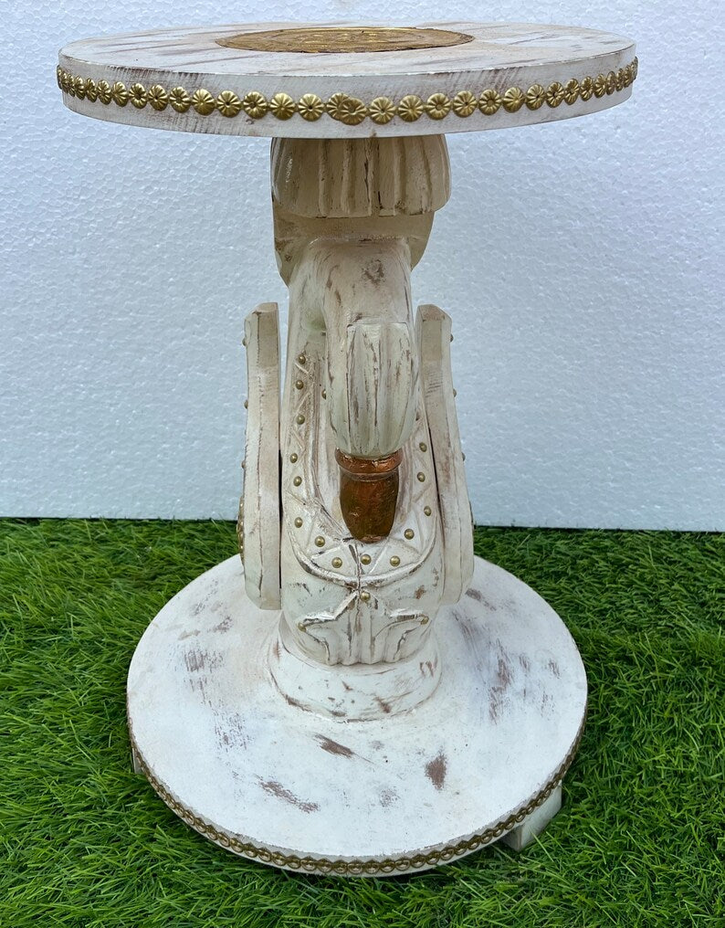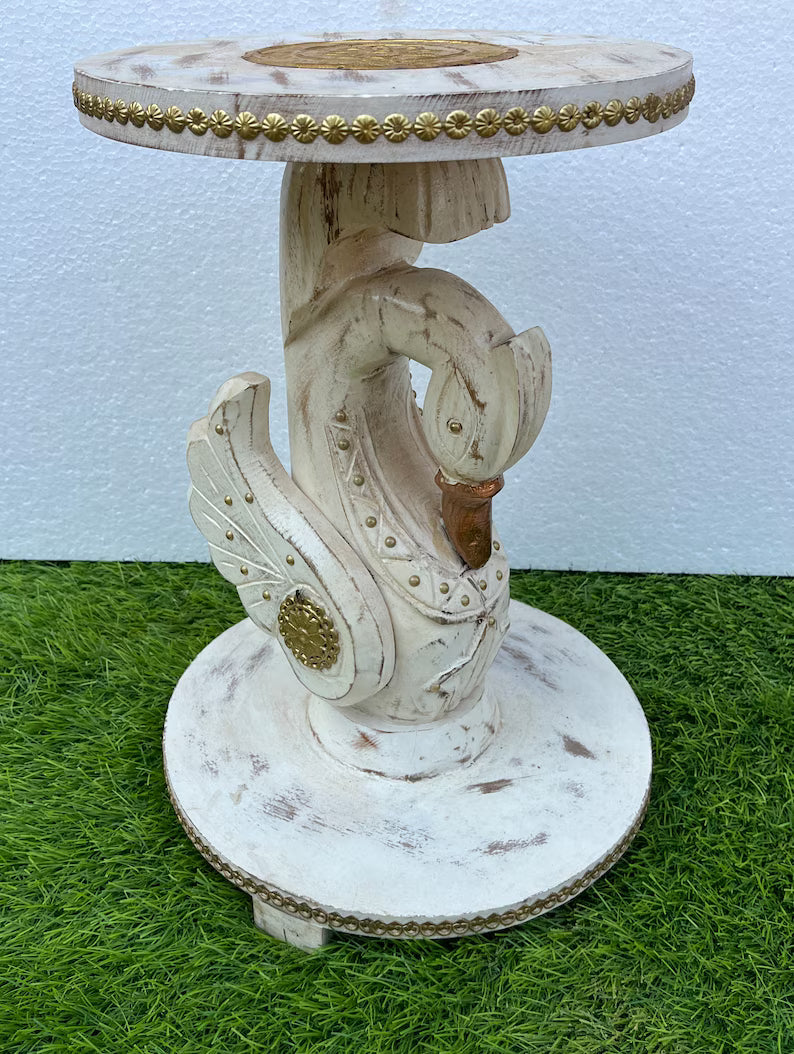 Hand Carved Solid Wood With Brass Work White Duck Side Table 45